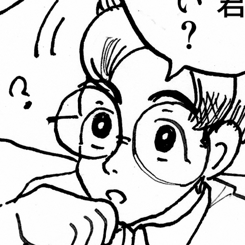 丸メガネとちょんと後ろに跳ねた髪型が特徴(ねぐせじゃないよ!)