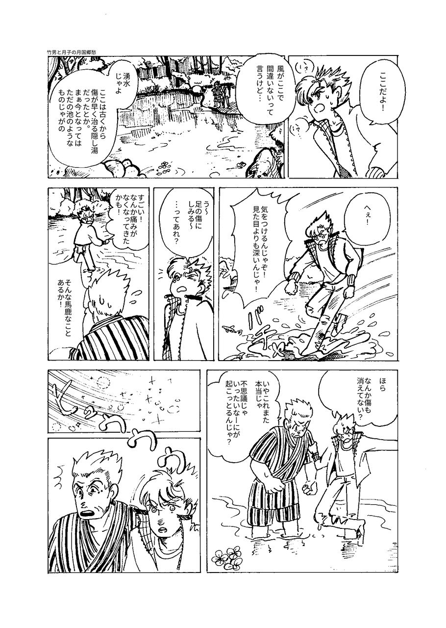 2019年12月28日 12月26日第6章「心」その23 漫画 竹男と月子の月国郷愁プロローグへ第一章「蚕の衣を纏った白うさぎ」へ第二章「書物に宿るモノ」へ第三章「待ち人」へ第四章「消えない痛み」へ第五章「ひとりじゃない」へ第六章「心」その1 その2 その3 その4 その5 その6 その7 その8 その9 その10その11 その12 その13 その14 その15 その16 その17 その18その19 その20 その21 その22 その23 <154・155ページ目>深く暗い水の中で一人待つヤトの元へ行く竹男と月子。月子の言葉に、ヤトはついに心を開く。優しく抱きしめられるヤト、そして・・・。次回に続く!